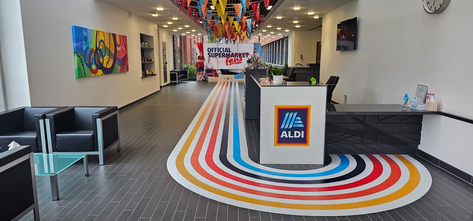Aldi have been Team GB’s Official Supermarket since 2015 but hadn’t yet let colleagues in on the fun. So, for Paris 2024, we created Team GB’s Official Superfans. We set out their superfan status in a patriotic manifesto and turned their office reception into a Team GB fanbase, with a running track, winners’ podium selfie opportunity, posters, and door vinyls.